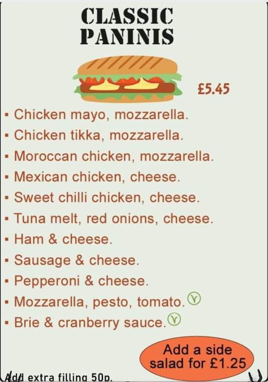 The Panini Shop offers a mouthwatering selection of delicious paninis, each bursting with flavor. Popular choices include the Italian Job, perfect for those craving a touch of Italy, or the Spicy Tuna, which has earned a cult following among locals for its invigorating taste. Other standout menu options include the Mexican-inspired Mexicano and the aromatic Moroccan Chicken. For something heartier, their jacket potatoes filled with options like cheese and beans or chicken mayo are a must-try, delivering a comforting yet satisfying dining experience.